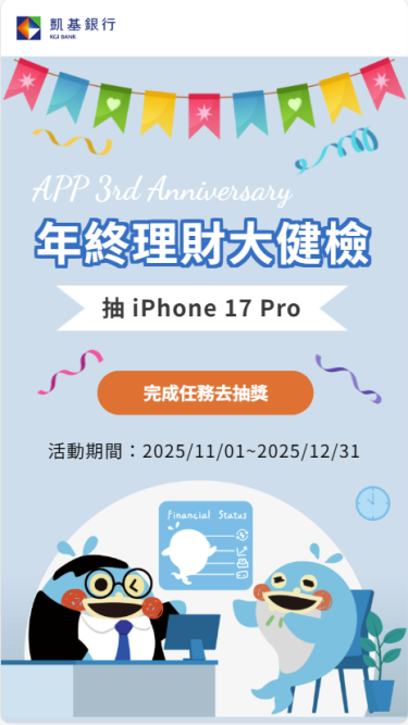 凱基銀行 | 年終理財大健檢|APP 3週年慶 抽iPhone 17 Pro