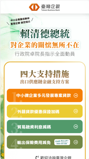 臺灣企銀 | 賴總統關懷企業 四大支持措施
