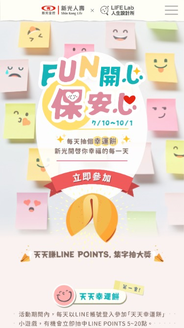 新光人壽|FUN開心 保安心|天天賺LINE POINTS,集字抽大獎