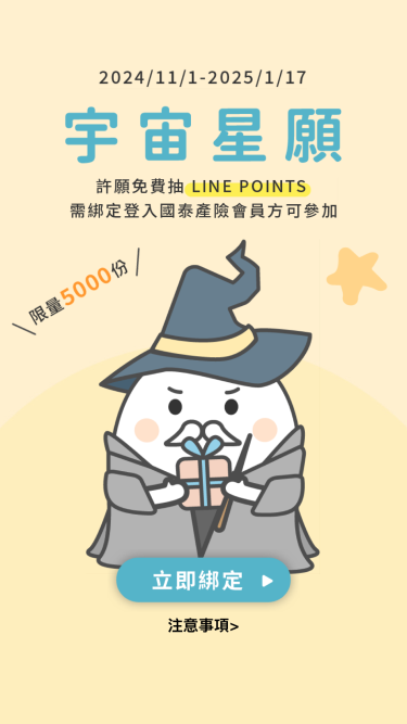 國泰產險|宇宙星願|綁定登入會員參加許願免費抽 LINE POINTS