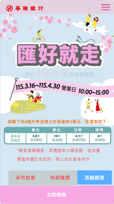 華南銀行 | 匯好就走,換匯指定四幣享優惠,快來立即換匯!