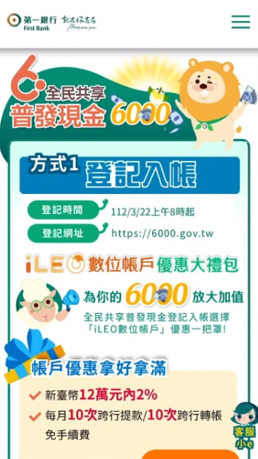 第一銀行|全民共享普發現金 6000