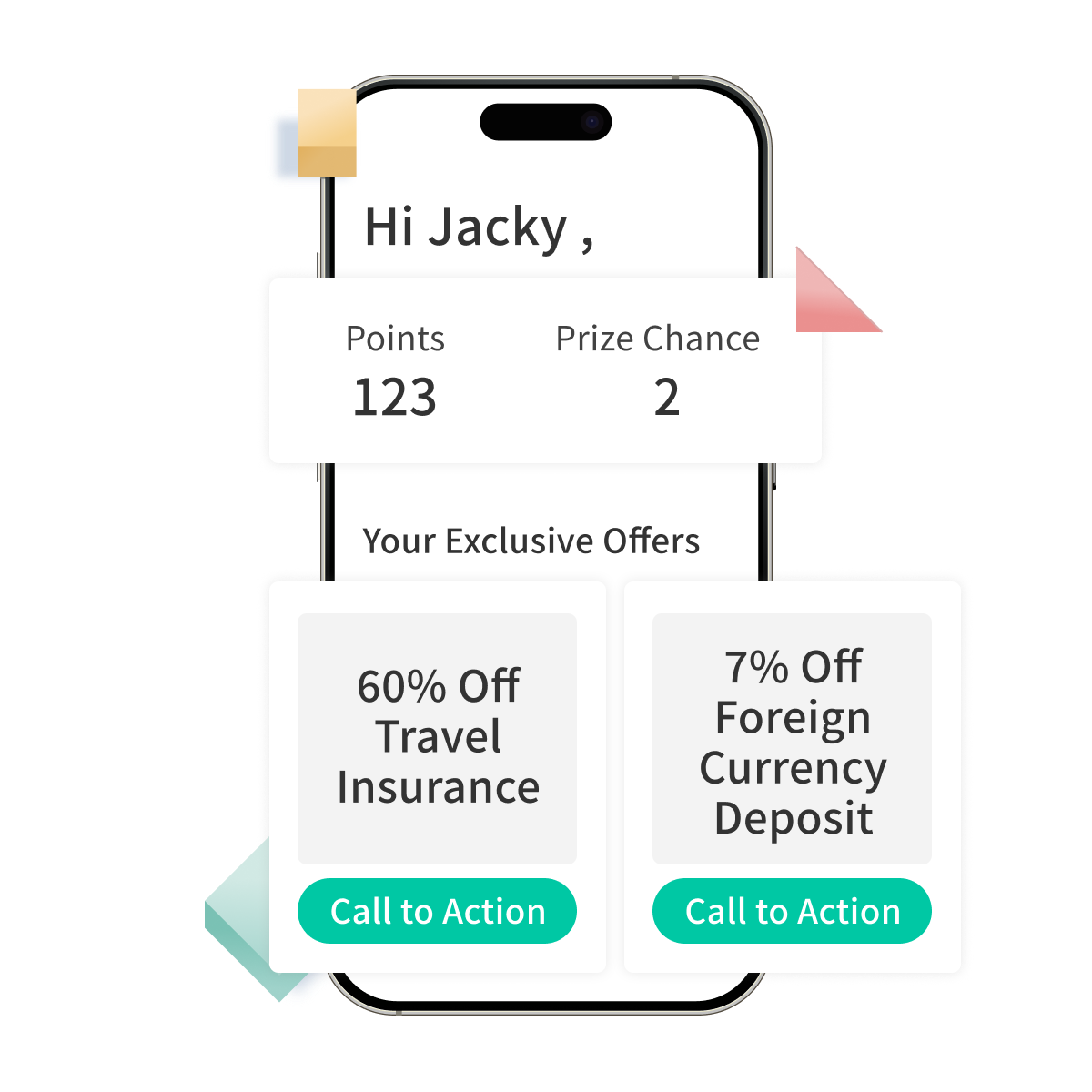 金融/保險業者透過「遊戲化獎勵」的解決方案,打造了:答題正確後抽獎、信用卡申辦推廣、天天登入抽獎、完成任務 送扭蛋機會、每日集點+MGM 抽好禮…等活動網頁,有效降低新客獲取成本及會員活躍度。